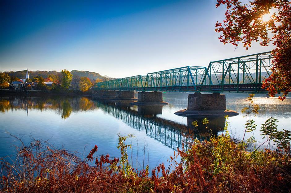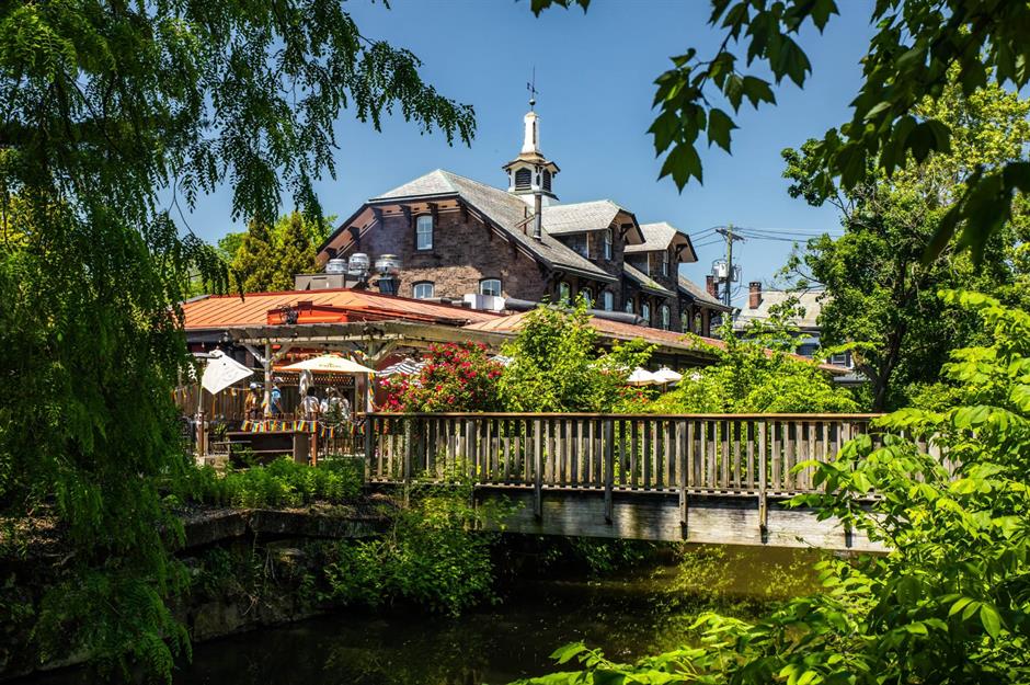 Less than an hour north of Philadelphia, New Hope sits on the Delaware River, connected by a bridge to Lambertville, New Jersey (pictured). It’s a town that’s as pretty as it is creative, filled with galleries, antiques stores, and cozy riverside cafés.