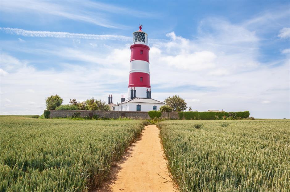 Directly next to the iconic red-and-white tower of Happisburgh Lighthouse on England’s North Norfolk coast, this Grade II-listed keeper’s cottage is packed with original character and seaside charm.