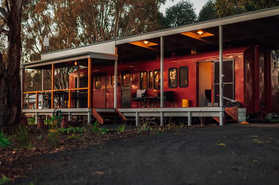 Converted from a former 1970s guard’s van that traversed Australia’s rails, this quirky stay sits in the heart of the township of Avenel and sleeps up to four guests. Inside you’ll find bespoke railway-inspired furnishings, a galley kitchen, polished timber bathroom and cosy lounge – with a workspace built on reclaimed parcel-shelf wood.