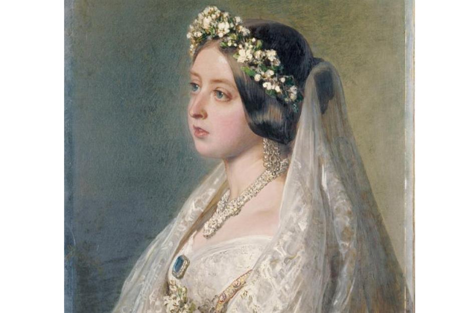George III grew deeply fond of Charlotte of Mecklenburg-Strelitz, despite meeting her only on their wedding day and Queen Victoria fell wholeheartedly in love with Prince Albert before they tied the knot. Pictured here is a portrait of her in her 1840 wedding dress and veil, painted in 1847 as an anniversary gift.