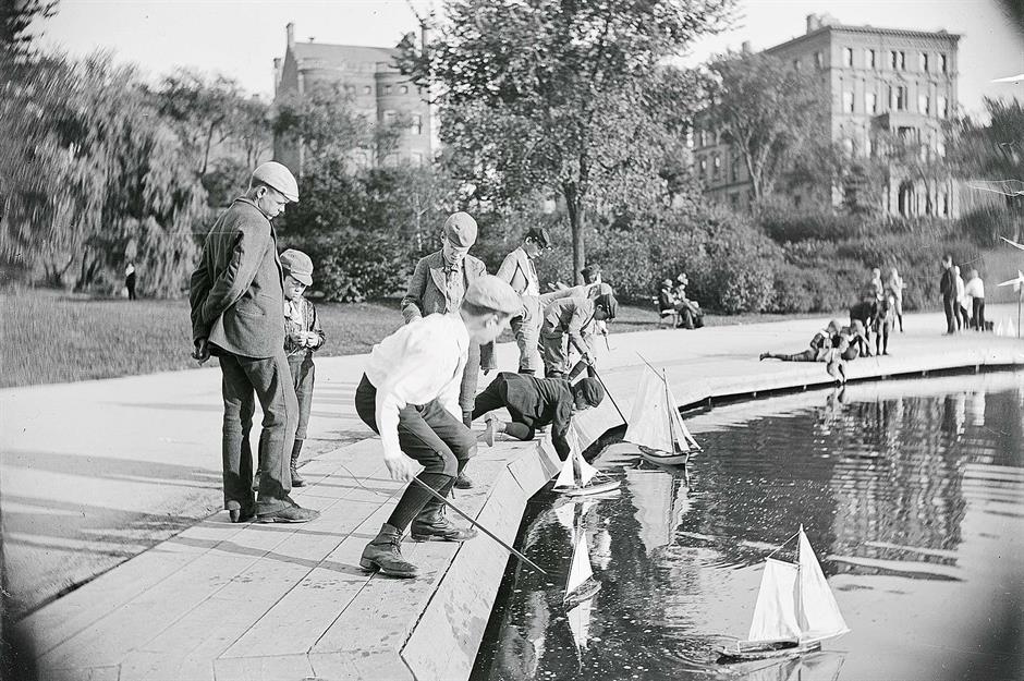 1897: Children play with boats on Central Park’s lake