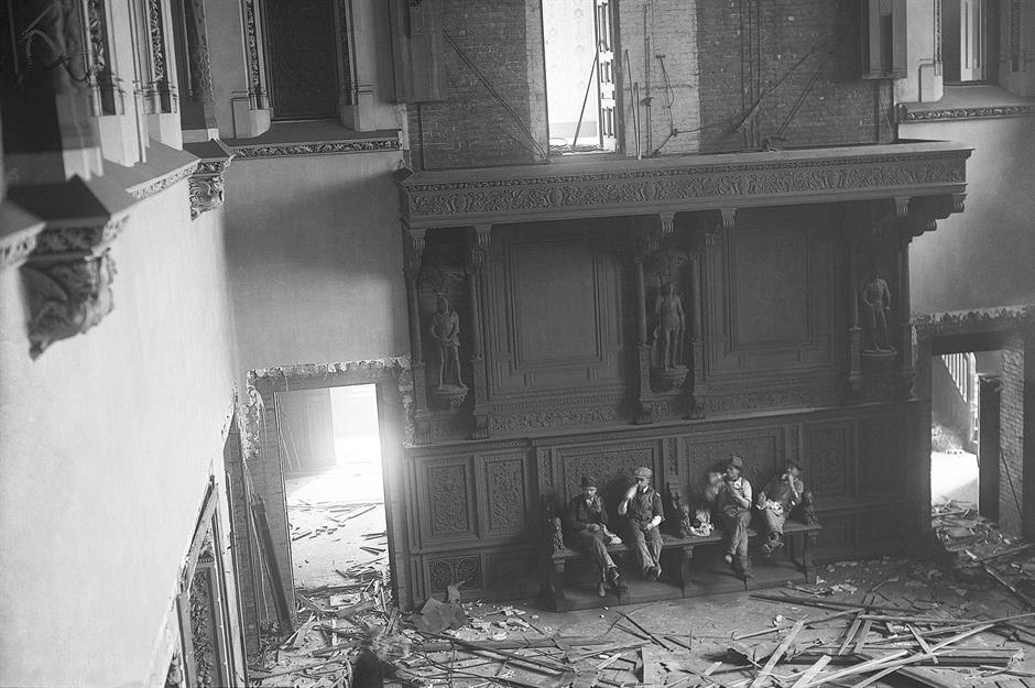 This striking 1926 image shows the dismantling of one of the Vanderbilt family's mansions at 52nd Street and Fifth Avenue. This vast space was once the grand dining room, where high society had gathered for lavish dinner parties. The house was soon replaced by a skyscraper, ushering in a new era for the city.