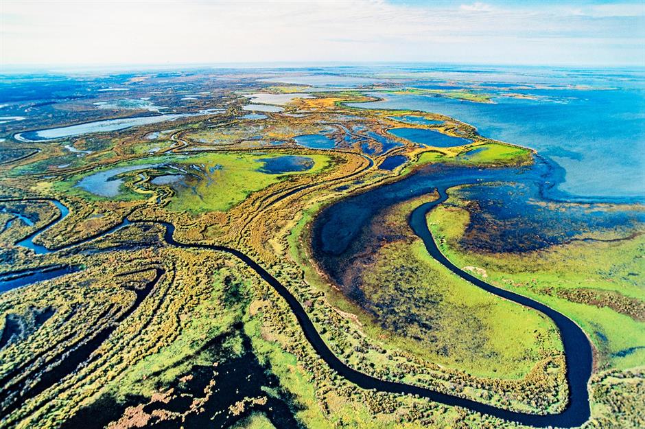 Wood Buffalo National Park has thousands of miles of untouched meadows and forests, as well as salt plains and the world’s largest inland freshwater delta (pictured).