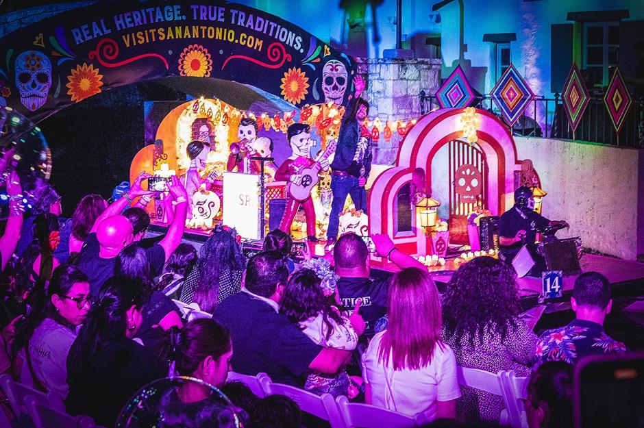 During this time you’ll find colorful altars honoring the dearly departed across the city, but the real highlight is the Day of the Dead River Parade (pictured). Thousands descend on the city’s famous River Walk to watch a flotilla of illuminated barges decked out with vibrant altars, Catrinas, and costumed performers celebrating the occasion.