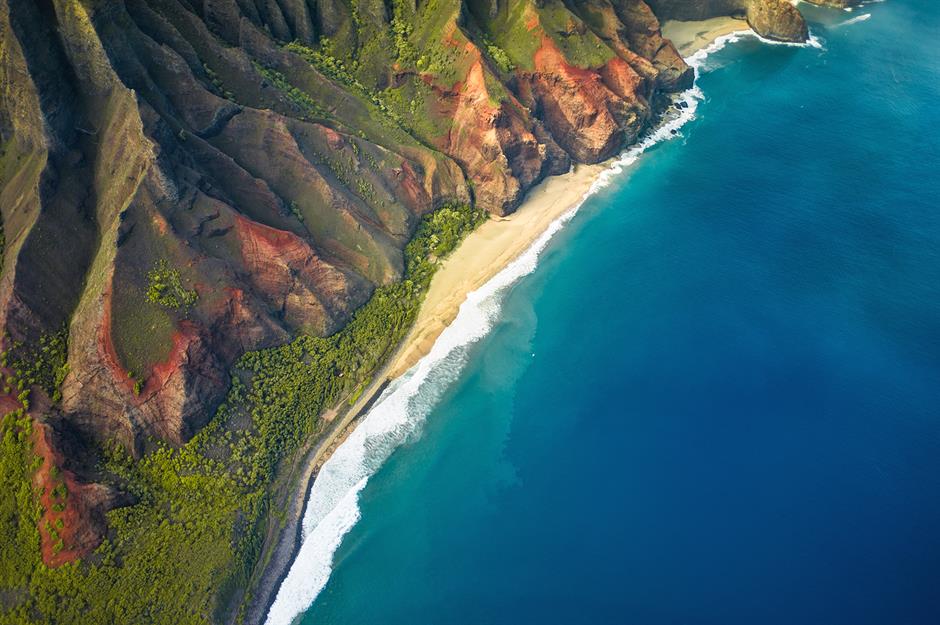 It's not hard to see why this mammoth canyon in Kauai has become known as the 'Grand Canyon of the Pacific.' It has the same rugged red rocks, waterfalls, and hiking trails of its Arizona sister, and it plunges for more than 3,600 feet. You'll get great views from the Waimea Canyon Lookout, or the Kalalau Lookout if you're up for a hike.